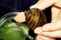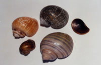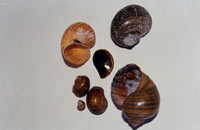 bivalve Corbicula fluminea no rio Doce em Ipatinga, MG. MONOGRAFICO - BIVALVES INVASORES : Dra. Maria Cristina Dreher Mansur, do Laboratorio de Aquacultura e Malacologia do Museu de Ciencias e Tecnologia da PUCRS, Porto Alegre - RS ( Com. pers. verbal em datas 8 e 9 de Julho de 2003 ), mantem no prelo importante e inedita contribuicao monografica que estuda e atualiza todo o conhecimento referente aos bivalvos do genero exotico invasor asiatico Corbicula spp na America do Sul ate hoje, magna obra que devera ser editada pela "Marinha do Brasil" ainda este ano. ESTUDO POTENCIAL DO BRADYBAENA : A literatura malacologica especializada de recente producao ( Almeida 2003 ) estuda e disserta sobre a potencialidade experimental do caracol exotico asiatico Bradybaena similaris, praga agricola de distribuicao cosmopolita, comentando entre outros ocorrencia da especie no Estado de Santa Catarina - SC, citando as seguintes tres ( 3 ) localidades : Nova Itaberaba ( no Oeste Catarinense ), Palhoca e Florianopolis ( na Mesorregiao capital do Estado ). Para vislumbrar a ocupacao geografica atual conhecida no Estado por parte deste pequeno molusco, ver em nosso Website Malacologico o seguinte endereco : http://www.intergate.com.br/malacologia/levantamento/levantamento.html . VALOR NUTRITIVO DE BIVALVOS CULTIVADOS : Conforme recente materia jornalistica ( Santos 2003 ), o Laboratorio de Nutricao Experimental da Universidade Federal de Santa Catarina - UFSC atualmente desenvolve pesquisas que visam avaliar o valor nutritivo regional de Ostras e Mexilhoes produzidas na Grande Florianopolis, produtos Catarinenses cada vez mais procurados em todo o Brasil, sendo que dita atividade garante emprego e renda em todo o litoral do Estado. A pesquisa surge como resposta a carencia de informacoes nutricionais especificas ( discrepantes de uma regiao a outra ), necessarias para que os malacocultores possam adequadamente rotular os seus produtos, conforme obrigatoriedade normativa da "Agencia Nacional de Vigilancia Sanitaria". GASTROPODE ROBOTICO : Pesquisadores