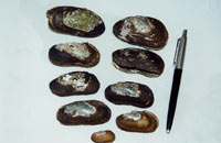 -Ernesto Tremel. 1995. Aplicacao e resultados do projeto de desenvolvimento sustentado com o berbigao Anomalocardia brasiliana ( Gmelin, 1791 ) ( Mollusca, Bivalvia ), realizada na Reserva Extrativista Marinha do Pirajubae, Ilha de Santa Catarina, Brasil. -E. N. Aquini, J. F. Ferreira & A. R. M. Magalhaes. 1995. Estoques naturais do mexilhao Perna perna ( Linne, 1758 ) ( Bivalvia ; Mytilidae ) na Ilha de Santa Catarina, Brasil. -B. Gomes, J. F. Ferreira & A. R. Magalhaes. 1995. Observacao do micronucleo em celulas do mexilhao Perna perna ( Linne, 1758 ). -R. M. Faraco, A. R. M. Magalhaes & J. F. Ferreira. 1995. Relacoes biometricas no mexilhao Perna perna ( Linne, 1758 ) ( Bivalvia, Mytilidae ). -Nelson Silveira Jr., Adriano L. Texeira, Fabio F. Brognoli & Adriana Pereira. 1995. Resultados preliminares do desenvolvimento de tecnologia de cultivo larval de Anomalocardia brasiliana ( Gmelin, 1791 ) ( Mollusca ; Bivalvia ). -Francisco C. Silva, Carlos R. Poli & Nelson Silveira Jr. 1995. Estudo de fixacao de larvas de ostras na baia Norte e no rio Ratones, Ilha de Santa Catarina, Brasil. -Aime R. M. Magalhaes. 1995. Malacologia. Importancia Economica. -Guilherme S. Rupp & Carlos R. Poli. 1995. Cultivo larval e pos-larval de Nodipecten nodosus ( Bivalvia ; Pectinidae ), com observacoes sobre crescimento e desenvolvimento morfologico externo. -Guilherme S. Rupp & Carlos R. Poli. 1995. Obtencao de reprodutores e inducao a desova de Nodipecten nodosus ( Bivalvia ; Pectinidae ). -Guilherme S. Rupp & Carlos R. Poli. 1995. Sinopse dos conhecimentos biologicos sobre Nodipecten nodosus ( Bivalvia ; Pectinidae ). -Nelson Silveira Jr., Guilherme S. Rupp, Francisco C. Silva & Sirley C. Araujo. 1995. Exitos obtidos pelo Laboratorio de Cultivo de Moluscos Marinhos nas diferentes etapas da larvicultura da ostra japonesa Crassostrea gigas ( Thunberg, 1795 ) ( Mollusca, Bivalvia ). -Moro, Leocir & Silmar Hemp. 1995. Ocorrencia de lesmas na regiao Oeste Ca tarinense. -Jaime F. Ferreira. 1995. Cultivo de mexilhoes em Santa Catarina. -Patricia M. Setoguchi, Kay Saalfeld & Cristiane Barreto. 1997. Levantamento dos moluscos encontrados em sambaquis. -A. W. C. Marenzi, J. O. Branco & E. Wojciechowski Jr. 1997. Malacofauna associada a pesca do camarao sete-barbas na enseada do Itapocoroy, Santa Catarina, Brasil. -M. Freitas, J. F. Ferreira & A. R. M. Magalhaes. 1997. Macrofauling encontrados em cordas de mexilhao cultivados na ilha de Ratones Grande ( SC ). -Garcia, E. N. Aquini, C. E. Holland & J. F. Ferreira. 1997. Mapeamento dos estoques naturais do mexilhao Perna perna no litoral de Santa Catarina : fase 1 - sul do estado. -Garcia, J. F. Ferreira, J. Guzenski & G. C. Manzoni. 1997. Sistemas sustentaveis para obtencao de sementes de moluscos. -A. R. M. Magalhaes, J. F. Ferreira & F. Wiggers. 1997. Estimativa de perda de cordas de mexilhao em sistema de cultivo experimental na ilha de Ratones Grande/SC. -A. R. M. Magalhaes, R. N. Benfatti, L. Ribeiro, M. Freitas & J. P. Ferreira. 1997. Fixacao de jovens mexilhoes em cordas de cultivo. -Moacir A. Torres, Eduardo A. Almeida & Afonso C. D. Bainy. 1997. Biomarcadores bioquimicos em mexilhoes Perna perna de Arraial do Cabo-RJ e da Ilha de Santa Catarina-SC. -F. D. Claudio, C. Gaspari, T. Tribess, M. A. Torres, A. R. M. Magalhaes & D. Wilhelm Filho. 1997. Status antioxidante do mexilhao Perna perna. I - variacao ontogenetica. -F. D. Claudio, C. Gaspari, T. Tribess, M. A. Torres, A. R. M. Magalhaes & D. Wilhelm Filho. 1997. Status antioxidante do mexilhao Perna perna. II - variacao sazonal. -L. Proenca, C. Schettini, F. L. Diehl, K. Huroshima, J. Pereira, L. Rorig, C. Resgala, M. Barreiros, M. Pessati, J. Branco, I. Santos, J. Abreu, J. Carvalho, M. Polette, F. Diehl, R. Rodrigues, S. Araujo, G. Manzoni & A. Marenzi. 1997. Enseada da Armacao do Itapocoroy, Penha SC : uma abordagem integrada do cultivo de moluscos marinhos. -L. A. Proenca, F. Schmitt, T. Costa & L. Rorig. 1997. Apenas uma diarreia ? Presenca de acido okadaico em moluscos cultivados no litoral de Santa Catarina. -Gilberto C. Manzoni & Roberta A. Araujo. 1997. Monitoramento do assentamento de moluscos marinhos em sistemas de captacao submersos no parque de cultivo da enseada da Armacao do Itapocoroy ( 26o 58´S - 48o 38´W ) ( Penha - SC ). -A. R. M. Magalhaes & D. Mendes. 1997. Colecao de Mytilidae do Laboratorio de Mexilhoes BEG/CCB/UFSC. -Kay Saalfeld, Christian N. Berlinck & Tania L. Barth. 1997. Colecao malacologica na Universidade Federal de Santa Catarina.